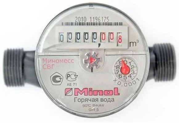 Счетчик воды Миномесс СВГ, 90°, Ду15, Qn1.5, 110 мм, с присоединителями, полимерный