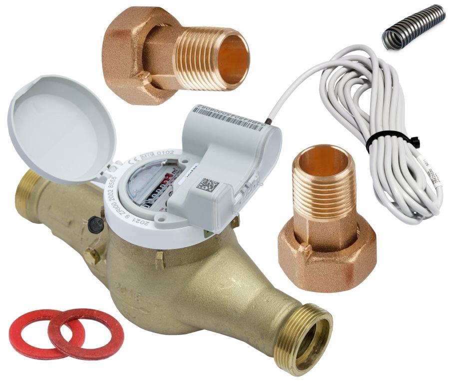 Счетчик воды Миномесс СВГДИ, 90°C, Ду 40, Qn 10, L 300 mm, с импульсным датчиком (1/10 L/Imp.), с присоединителями, металлорукав
