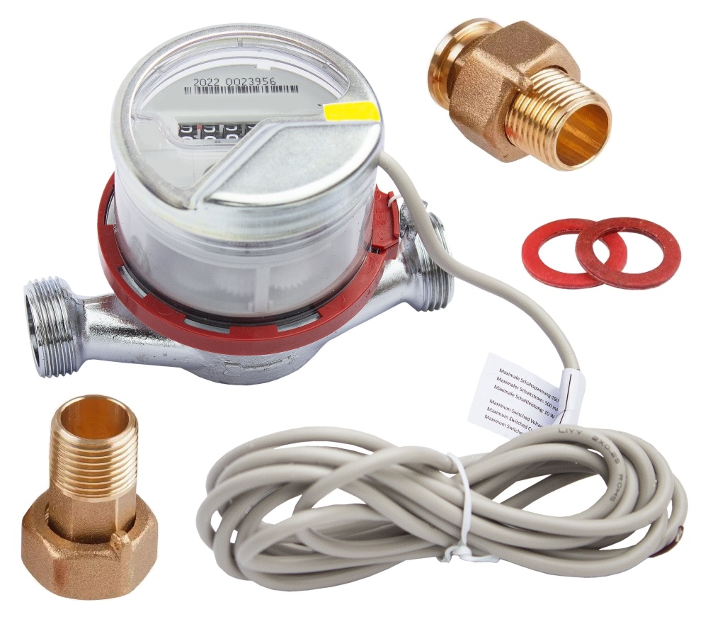 Счетчик воды Миномесс СВГИ, 90°C, DN 15, Qn 1,5, L 80 mm, с импульсным датчиком (1L/Imp.), с присоединителями